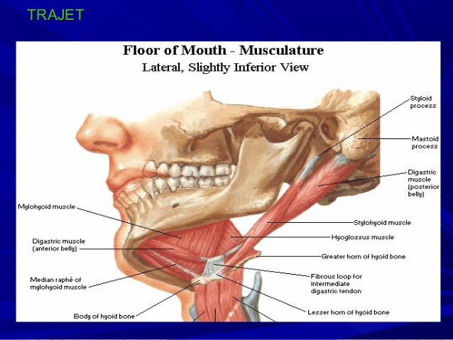 Le muscle digastrique est intéressant car il relie la mandibule à l’os temporal en faisant un pont sur l’os hyoïde. Quand la mandibule est tirée en avant, c’est toute une chaîne musculaire et fasciale qui se tend, et peut perturber le fonctionnement de la région temporo-occipitale ainsi que cervicale.