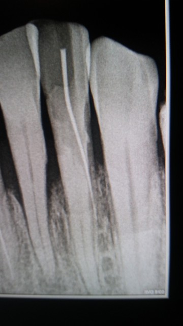 Fausse route avec perforation sur une incisive inférieure très calcifiée. (eugenol.com)