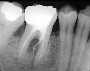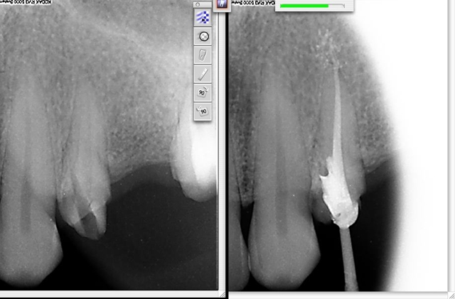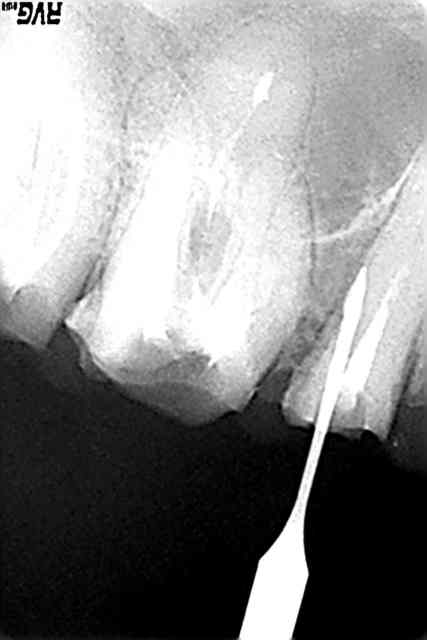 Fausse rote avec perforation sur une incisive inférieure très calcifiée. (eugenol.com)