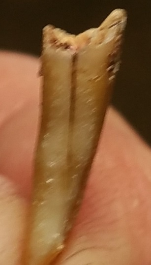 Cette dent n’a pas subit de choc mais elle présente de légères fissures visibles à la lumiere rasante et la pointe est légèrement ebréchée ou usée, je suppose à cause du bruxisme (Le bruxisme est depuis traité par le port d’une gouttière la nuit )
