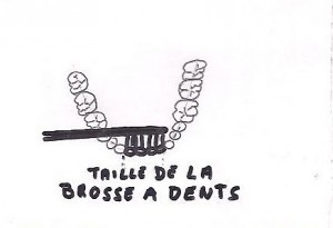 La taille de la brosse à dents doit être proportionnée à la largeur de l’arcade dentaire pour pouvoir permettre un mouvement en largeur à l’intérieur de l’arcade dentaire. Approximativement, la longueur de la brosse doit être égale à la largeur des 4 incisives inférieures additionnées côte à côte.