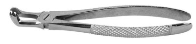 Les davier pour dents de lait sont plus petits, c’est à dire qu’ils ont des mors plus petits puisque les dents de lait sont plus petites, mais ils sont les mêmes que pour dents définitives. Les manches aussi sont plus petits, car il faut moins de force et surtout pour être cachés dans la paume de la main et impressionner moins les enfants. Comme les manches sont plus courts, il y a un ressort qui les fait ouvrir automatiquement. Il n’est pas nécessaire de remontrer toute la série des daviers pour dents de lait, j’ai choisi d’en montrer un seul comme exemple.
