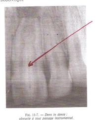 Invagination dentaire : c’est la ‘dens in dente » caractéristique de la « mésiodens » vue avec les dents surnuméraires.