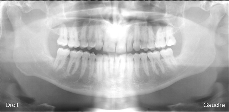 Radiographie panoramique du même parient: 11-12 soudée en une seule dent.