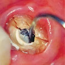 Fracture de racine due à la corrosion d’un tenon métallique.